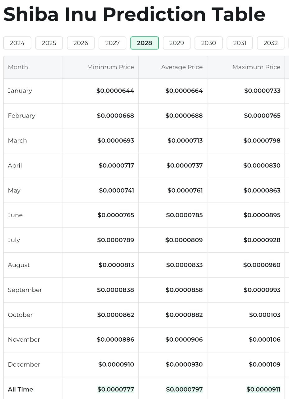 Despite the surge, Changelly experts extended the timeline regarding when the $0.0001 prediction could become a reality. According to the analysts, the $0.0001 target could materialize by October 2028, with the token expected to reach a maximum price of $0.000103 by then.