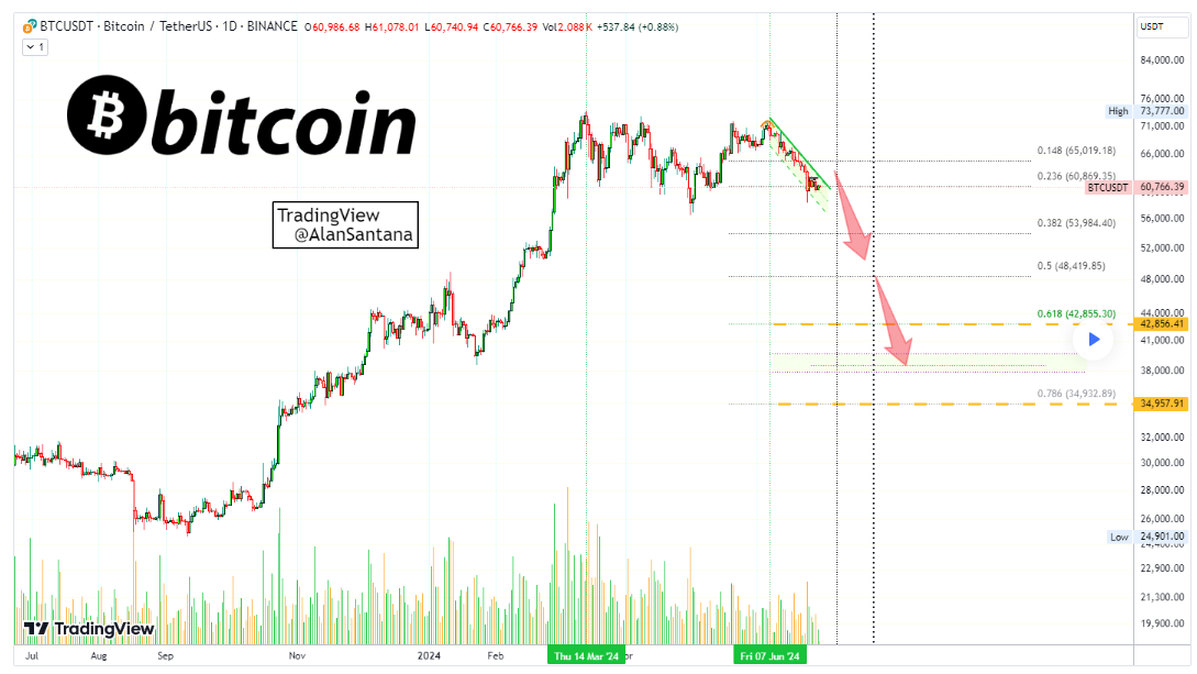 As the market anticipates Bitcoin’s next move, crypto trading expert Alan Santana shared his insights on the latest price movements in a TradingView post on June 30, providing potential correction targets.
