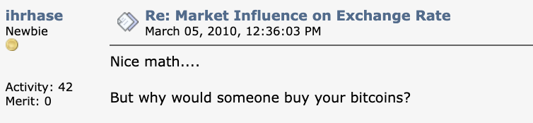 New Liberty Standard would later add supply and demand into its pricing model, leaving us with this spectacular post from a non-believer.