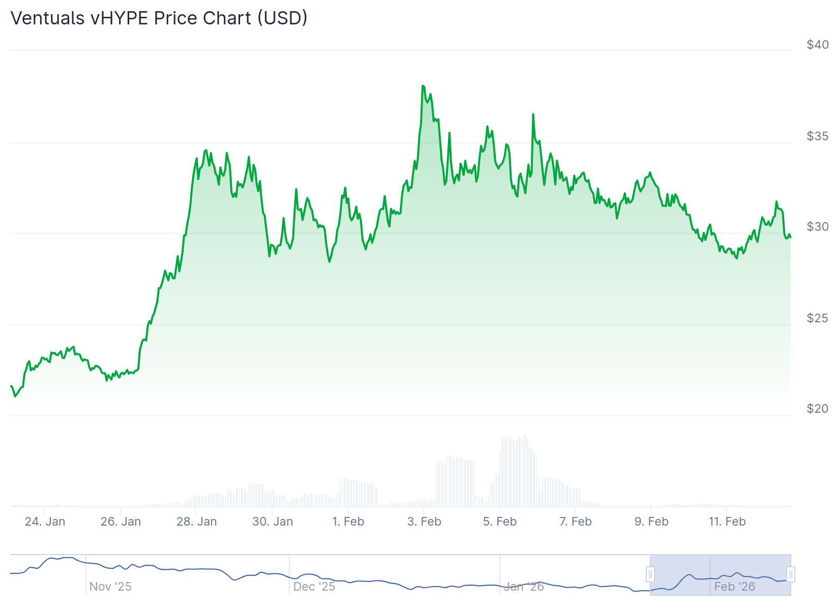 vHYPE chart, Jan. 23 – Feb. 12. Source: CoinGecko