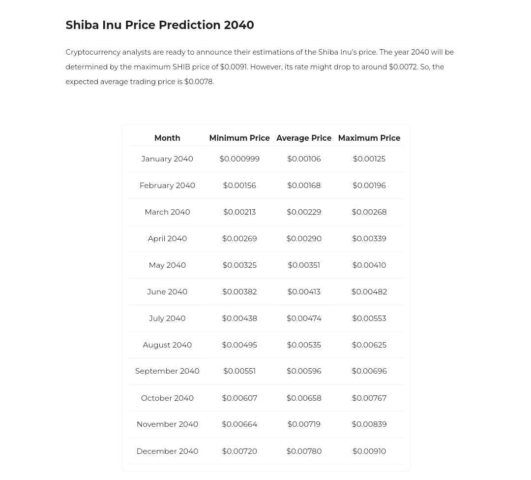 Notably, this represents an attempt at procuring Shiba Inu at discounted prices in anticipation of a price surge. For instance, crypto platform Changelly predicts that Shiba Inu could reach a maximum price of $0.00009 in March 2029. They also expect a $0.0007 price in 2030, and $0.005 in July 2040.