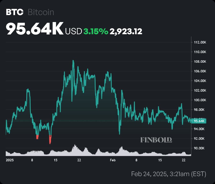 On the whole, since the start of the year, the price of Bitcoin has increased by 3.15%, up to $95,640 at press time.