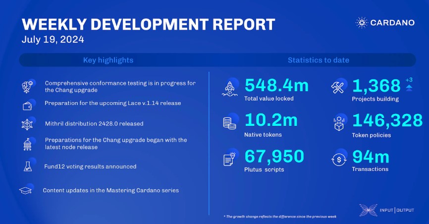 In a recent weekly report by Input Output Global (IOG), the engineering development company behind Cardano (ADA), significant growth for the blockchain has been unveiled. The report highlights notable achievements in Total Value Locked (TVL), transactions and the increasing number of projects being built on the network.