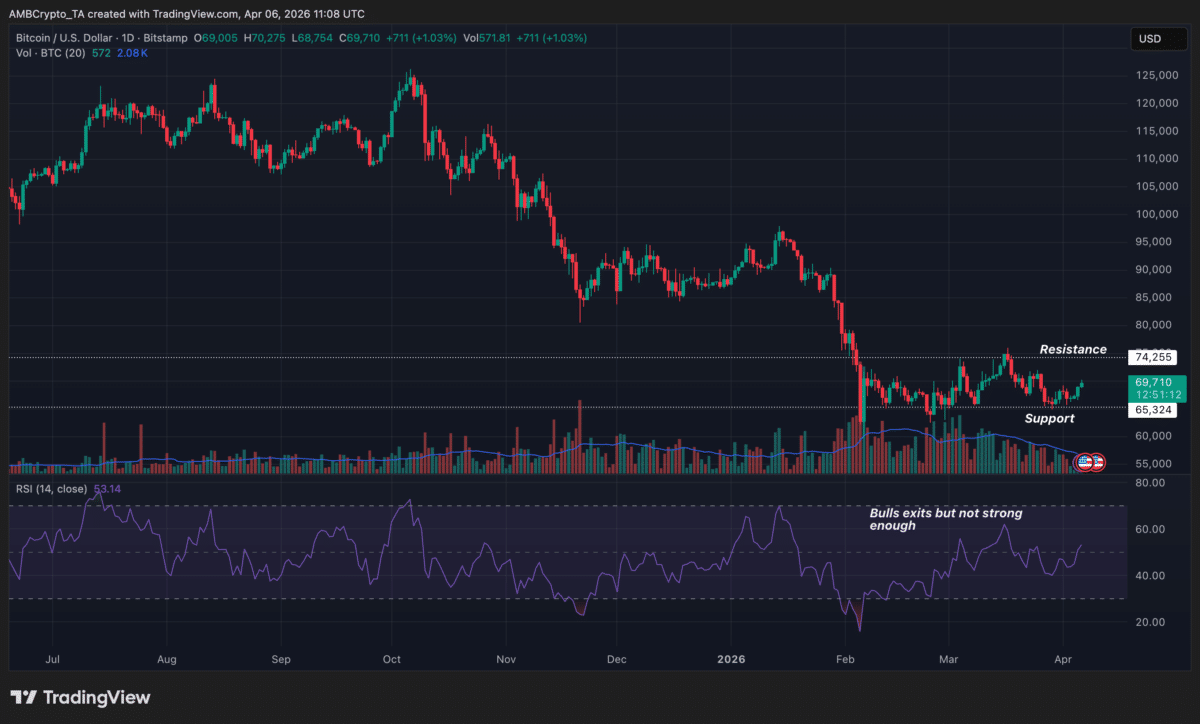 This comes as Bitcoin [$BTC] was trading at $69,753.50 after a hike of 4.06% in the past 24 hours.