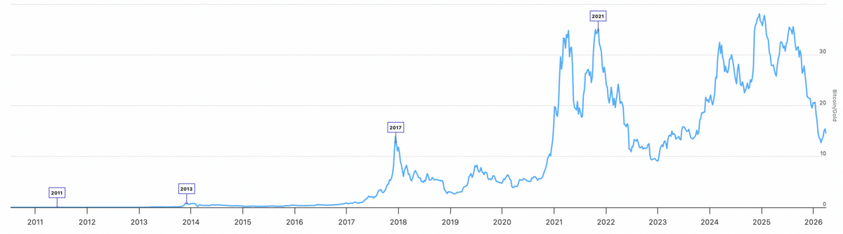 The Bitcoin Gold ratio further confirms this sentiment, showing that we are currently in a cooling phase after a major cycle.