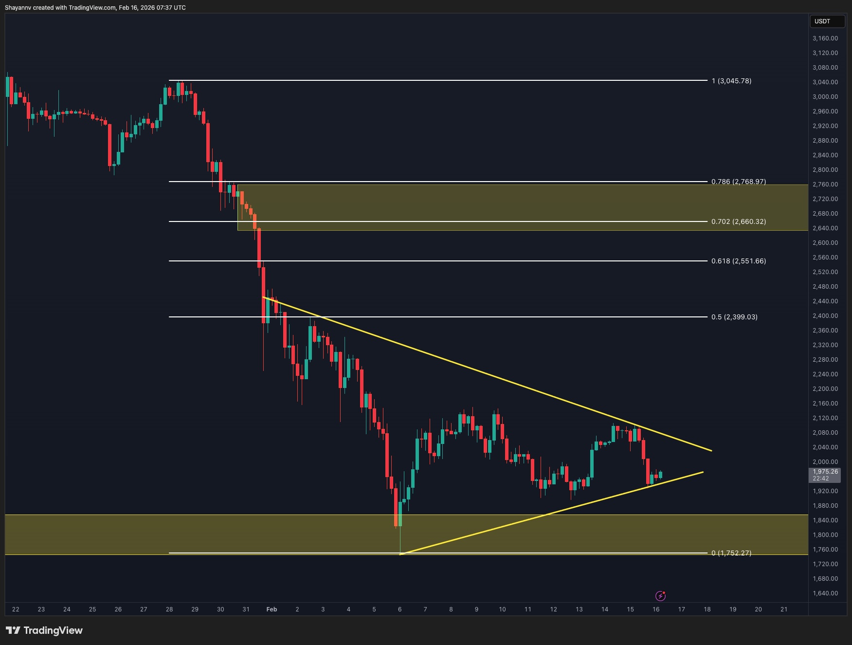 A valid breakout above the channel’s midline resistance would be required to shift short-term momentum in favor of buyers. Conversely, a breakdown below the $1,800 support would expose lower demand zones and likely reintroduce strong selling pressure.