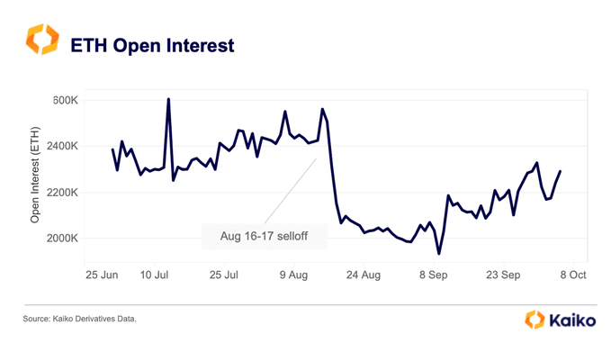 As of October 10, Kaiko observes that there are more than 2.2 million contracts, and the number has been rising steadily over the past few trading weeks. With increasing open interest, it can hint that bulls are in the equation, which may support prices now that prices are under immense pressure.