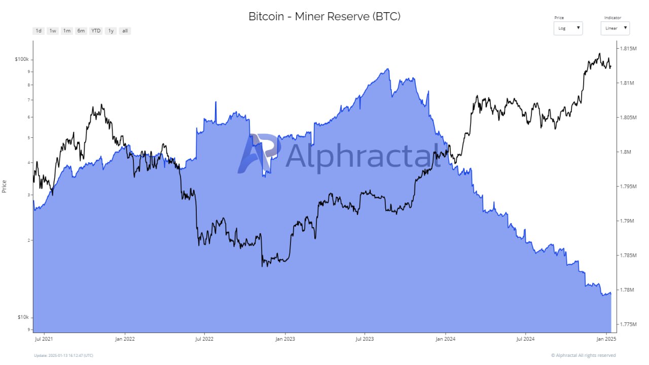 Chart shared by Alphractal showing the melting of miners’ reserves.