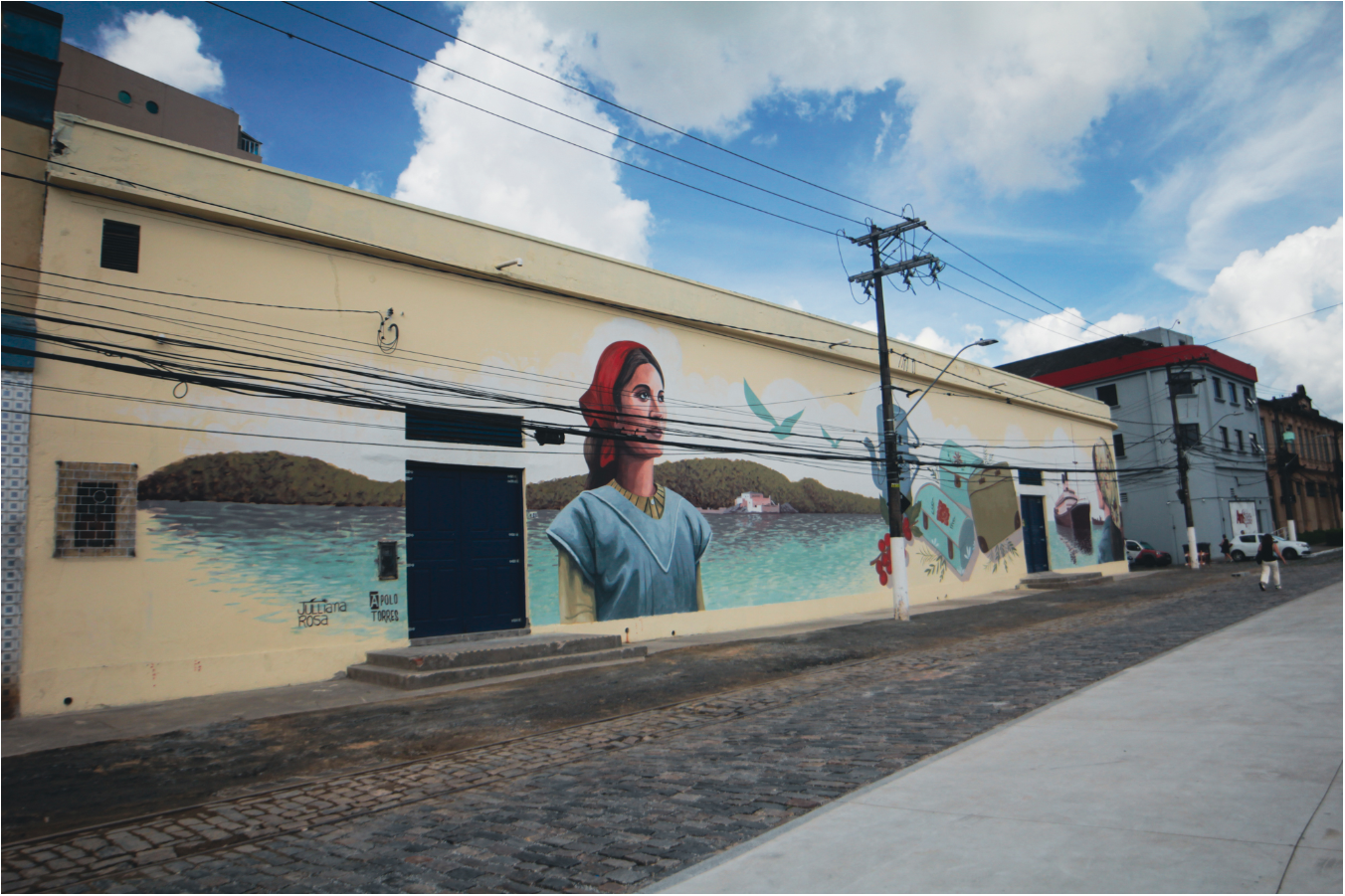 Playing further on the cultural symbolism, the mural was painted on a building that formerly housed the Italian Consulate, which is located on Tuiuti Street in front of the forthcoming Valongo Park. The Park location is significant because it served as the historical “landing point” for Santos, where many arrived at the port city.