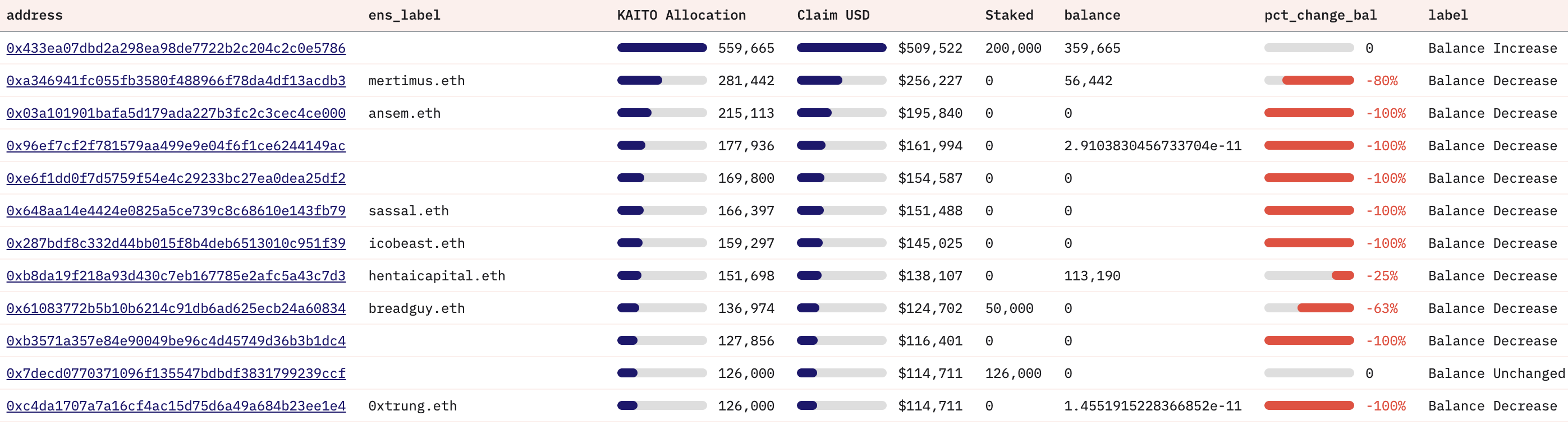 Notably, the top 12 claimers received approximately $2.1 million worth of KAITO, but 10 of them have already sold at least a portion of their tokens, and 7 have fully exited their positions.