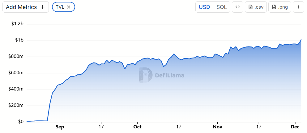 Jupiter Lend’s TVL topped $1 billion for the first time just today, Dec. 3, supported by steady inflows since the protocol launched in late August.