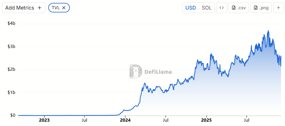 The update also came as Kamino — the second-largest DeFi protocol in the Solana ecosystem by TVL — has seen its dollar-denominated liquidity falling in recent months. Per DefiLlama, the protocol’s TVL dropped from a peak of $3.71 billion in early October to $2.33 billion at press time, a decline of nearly 30% in just two months.