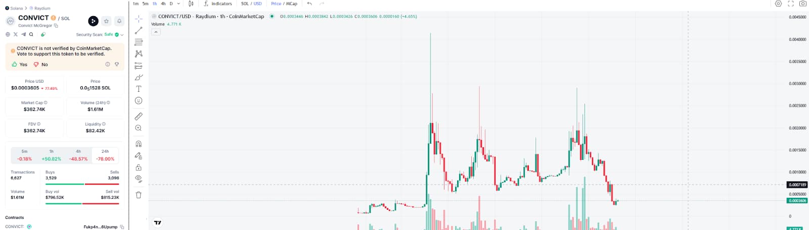 “Convict McGregor” is a satirical memecoin inspired by public reports of Conor McGregor being found liable for sexual assault in a civil case. This is not a criminal conviction. The coin and its content are purely for entertainment and meme culture. Always verify facts and invest responsibly!