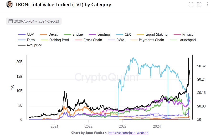 TRON’s lending app managed to perform well based on existing metrics, competing with DeFi versions from the Ethereum ecosystem. The liquidity on TRON is still separate from all other chains. Lending may find another boost in 2025, as the chain will carry its own version of WBTC, potentially serving as valuable collateral.