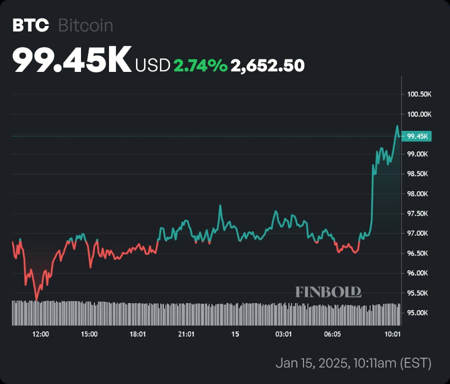 What followed was another drop below $93,000 — however, over the last 24 hours, the price of the leading cryptocurrency has gone up by 2.74%. At press time, a single Bitcoin was changing hands at $99,450.