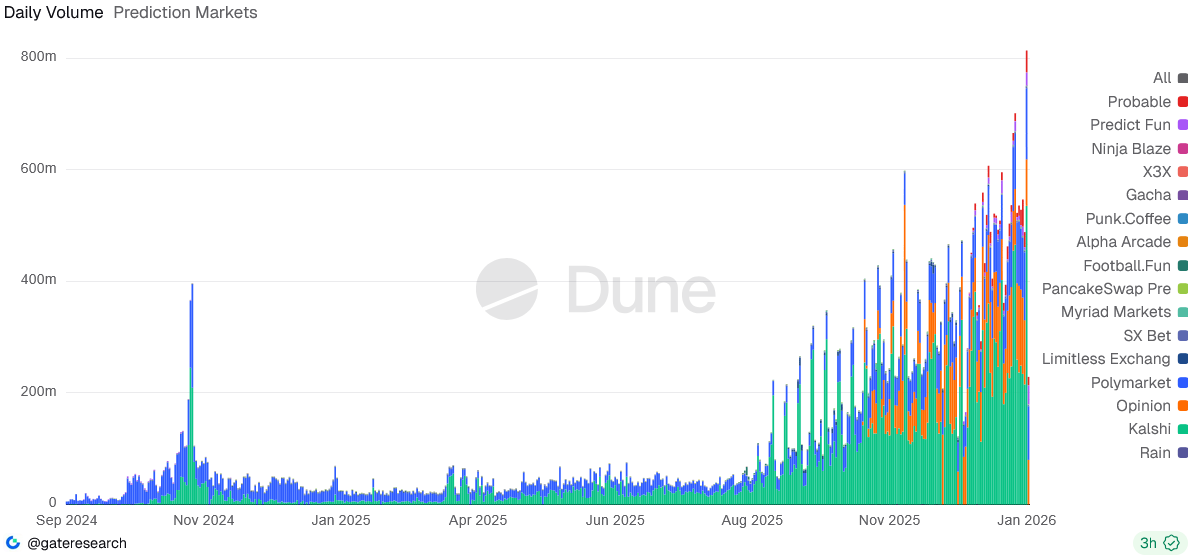 Lu’s remarks come as prediction markets’ trading volumes reached a record $814.2 million on Monday, smashing the previous record of $701.7 million last Monday, Dune Analytics data shows.