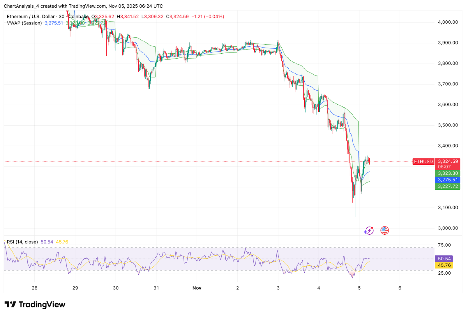 - Bearish case: Failure to clear resistance keeps the structure heavy. Losing $3,000 unlocks deeper downside toward $2,800.