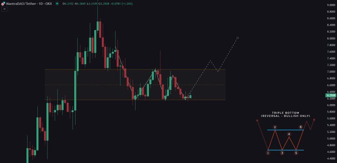 $OM on the daily chart is forming a Triple Bottom bullish pattern. This altcoin has solid growth potential. The strong bullish momentum already pushed $OM to an ATH at the end of February. Continued capital inflow hints at a possible new rally. If $OM breaks the $7.07