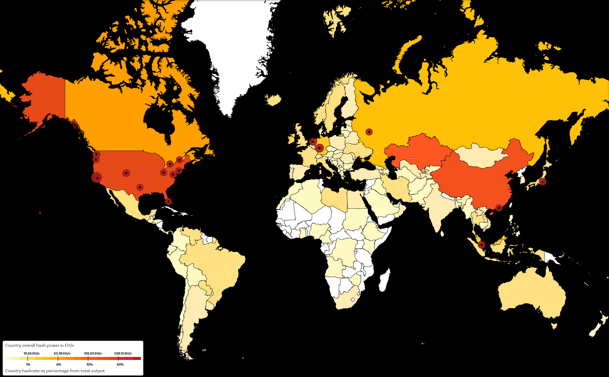 Bitcoin Mining Hashrate World Map. Source: Chain Bulletin