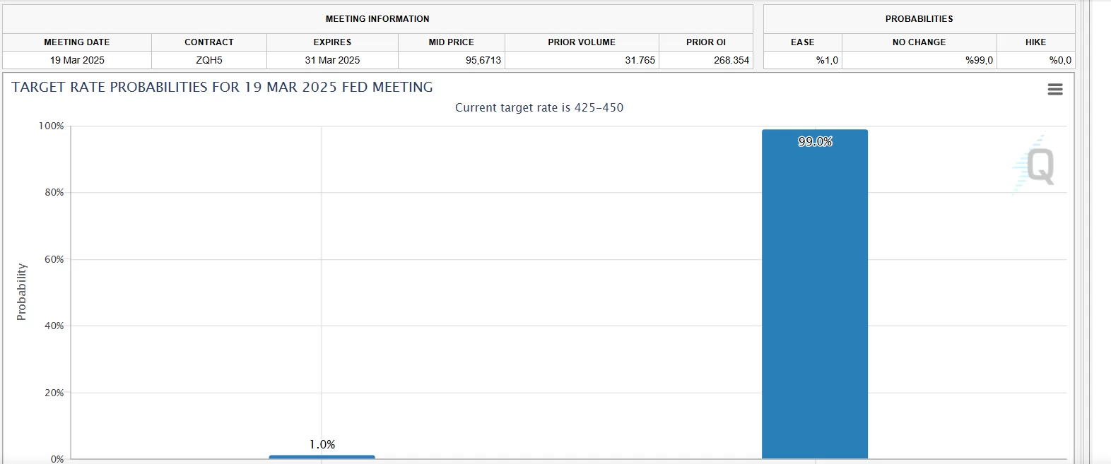 The general expectation for the FED interest rate decision, which is eagerly awaited by global markets, is that the FED will leave the policy rate unchanged. According to FED Watch, the probability of interest rates remaining unchanged in March is priced in at 99%.