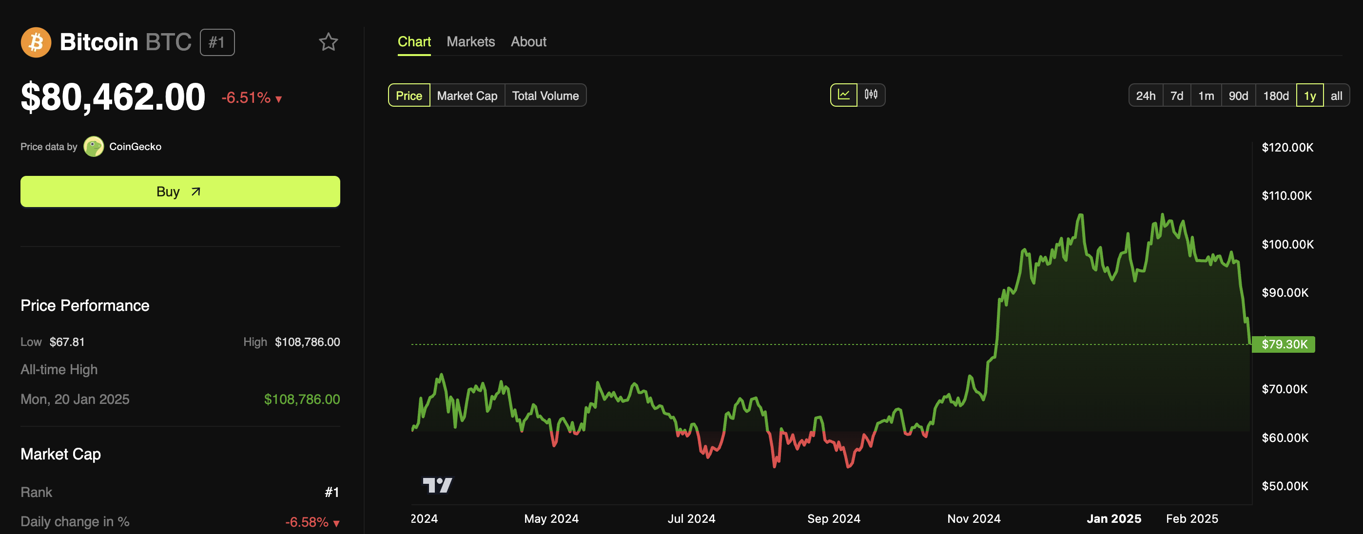 At press time, Bitcoin was trading at $80,462 after a 6.5% decrease in the past 24 hours. The broader crypto market was also down, with the total market capitalization depreciating by 7.7%.