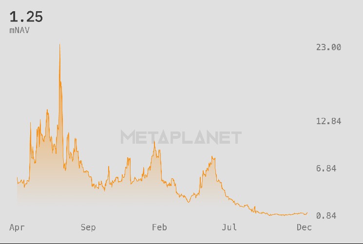 Metaplanet is now up 20% since the start of the year. The rally means company is valued at a premium to its bitcoin holdings, with a multiple to net asset value (mNAV) of around 1.25, the highest level since before October’s plunge in crypto prices, according to the company’s dashboard.
