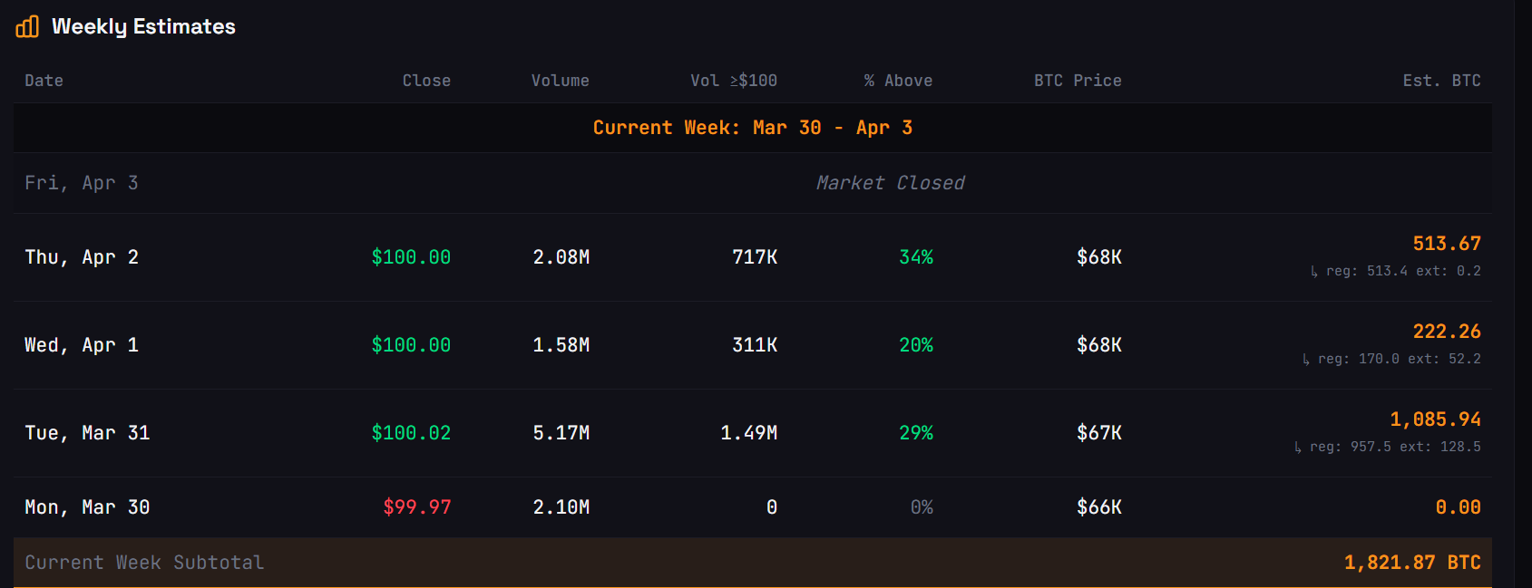 According to estimates from STRC.LIVE, Strategy could be set for a purchase of at least 1,821 $BTC based on funds raised for the week ending April 3.