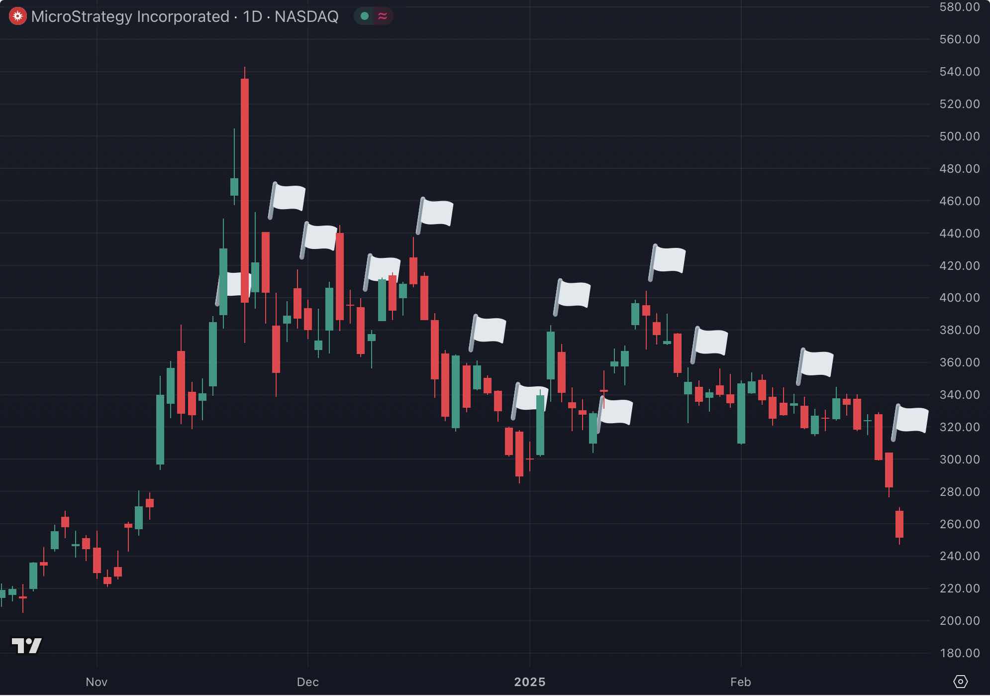 Depending on how one prefers to calculate the price of Strategy stock (MSTR) as of its November 11 announcement that coincided with a major price gap, it’s certainly true that it’s also lower than all 13 of its latest bitcoin purchases.