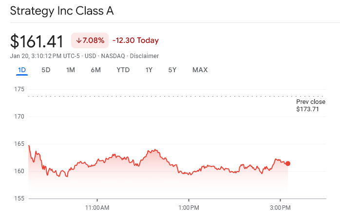 MicroStrategy Share Prices on January 20. Source: Google Finance