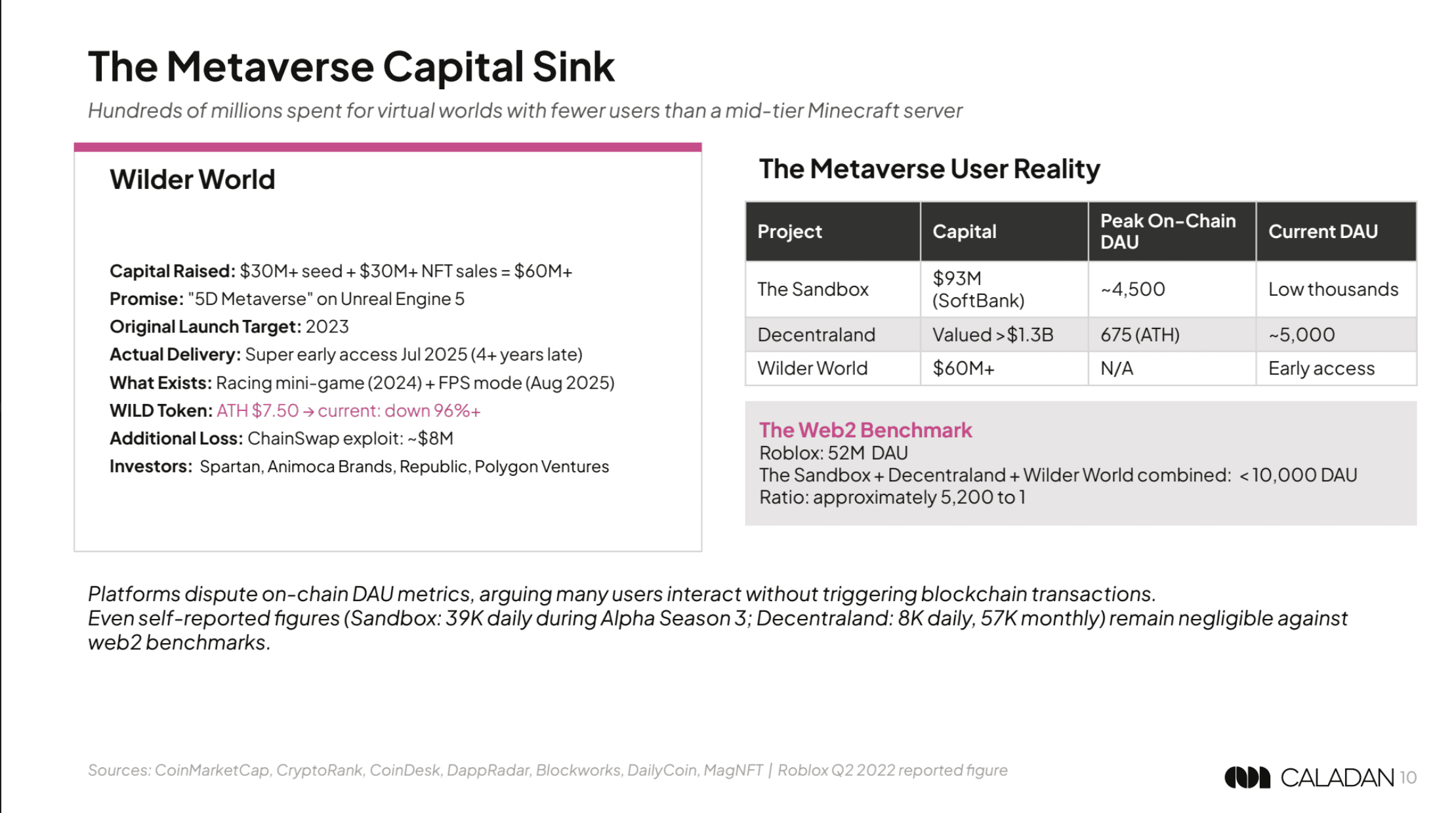 The demand side never caught up with the flood of capital. Even at the height of the mania, just 12% of gamers had tried a crypto game, according to a Coda Labs survey, cited by Caladan.