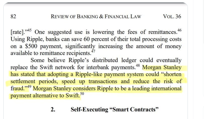 An XRP community researcher recently drew attention to dated statements from investment banking giant Morgan Stanley, which praised Ripple as a suitable alternative to SWIFT.