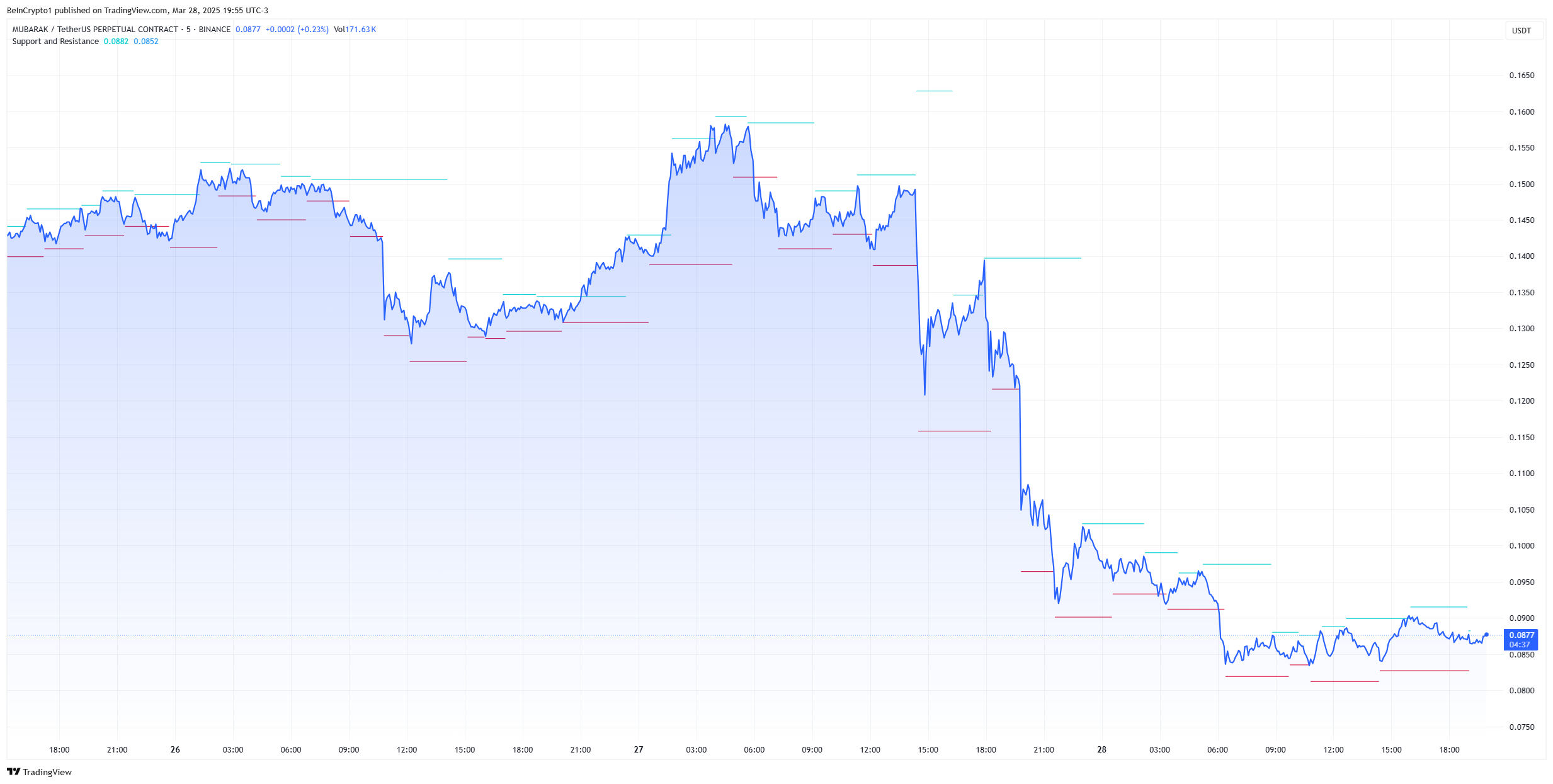 Figure: MUBARAK Price Drops After Binance Listing. Source: TradingView