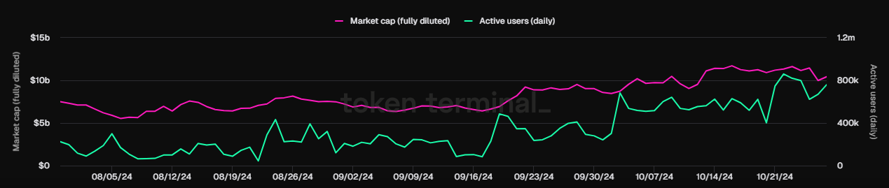 Aptos’s daily active users and value locked have risen in the past few months. | Source: TokenTerminal