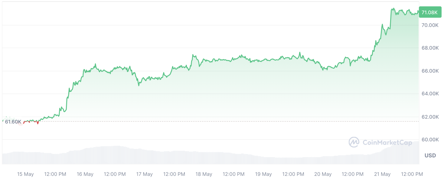 Despite the substantial transfer, the Bitcoin price has remained stable, continuing to trade above $70,000. This level is just 3.75% below its all-time high, indicating strong market confidence and ongoing interest from both institutional and retail investors.