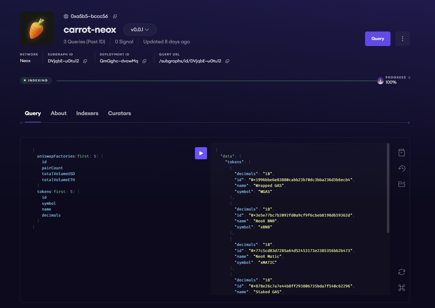 An example subgraph for Neo X data (Source: The Graph Studio)