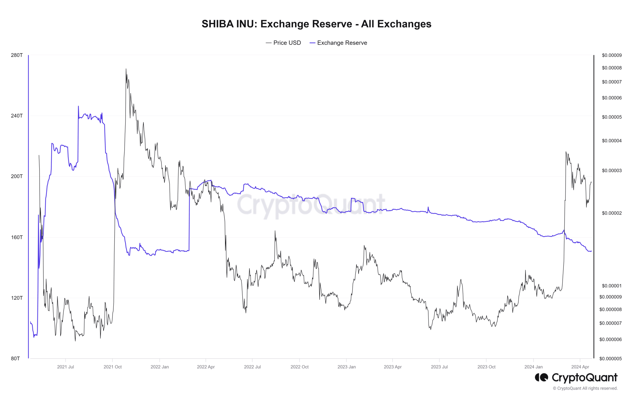 The move to amass these funds and hold onto them demonstrate a broader culture observed among Shiba Inu proponents, as optimism grows. Data from CryptoQuant suggests that investors have continued to withdraw their Shiba Inu from exchanges, causing the exchange reserves to drop to 150.7 trillion SHIB at press time.
