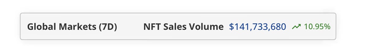 Non-fungible token (NFT) sales increased by 10.95% this week compared to the previous week, marking the second consecutive week of gains. Despite a 76.7% drop in the number of buyers, blockchain-issued digital collectibles achieved $141.73 million in sales.