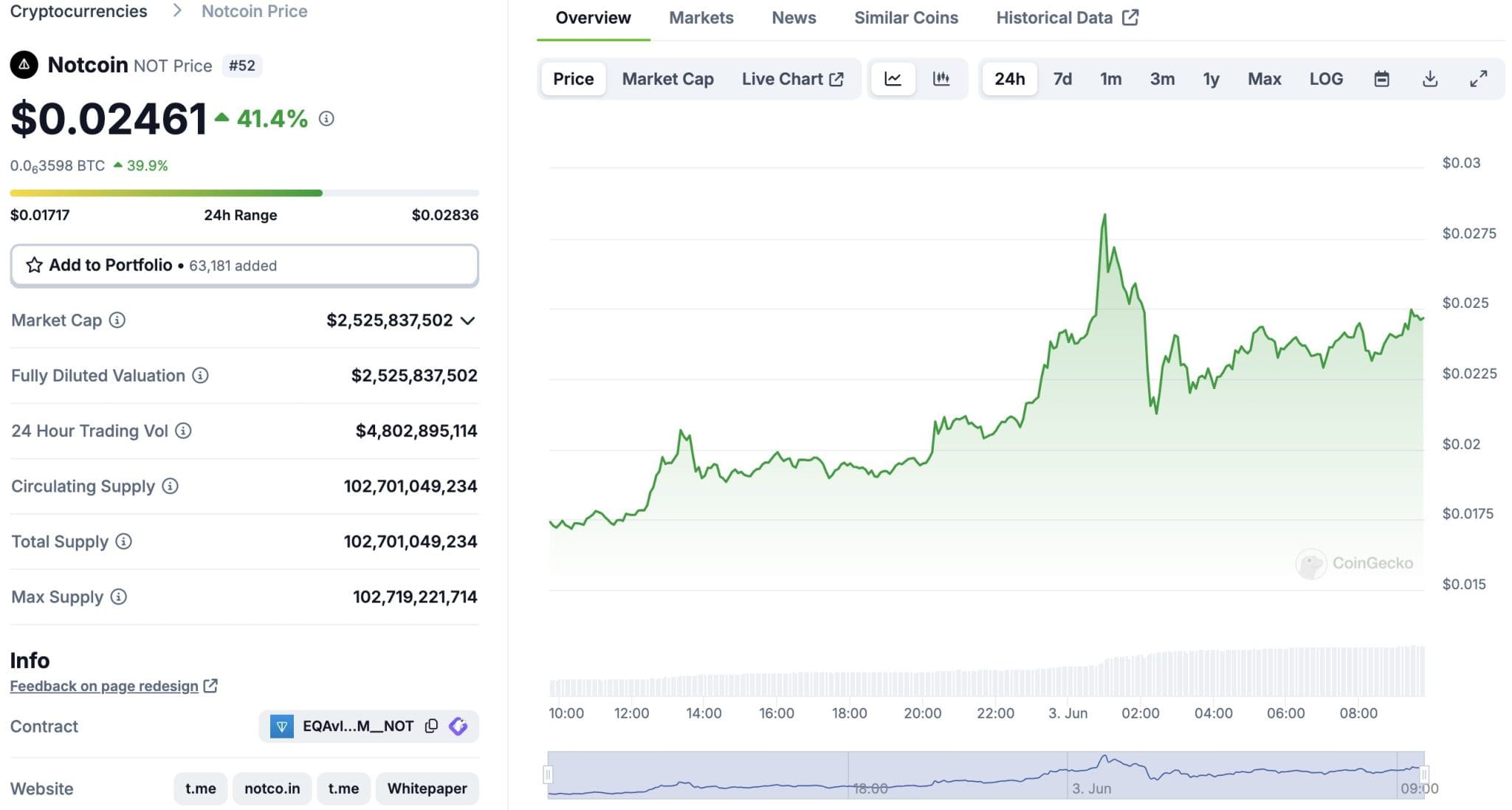 Notcoin Network Transaction Spikes As NOT Price Increases More Than 40% 2