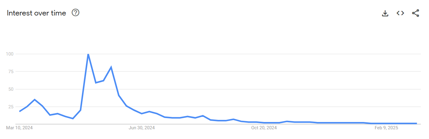 However, Google Trends data indicates that interest in Notcoin has sharply declined and has nearly faded by 2025.