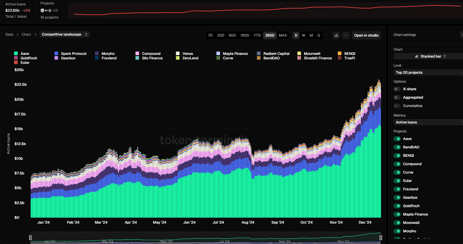 Reporting on DeFi lending hinges on the method used to track value. The current level of active loans, as measured by Token Terminal, is lower compared to other leverage metrics.