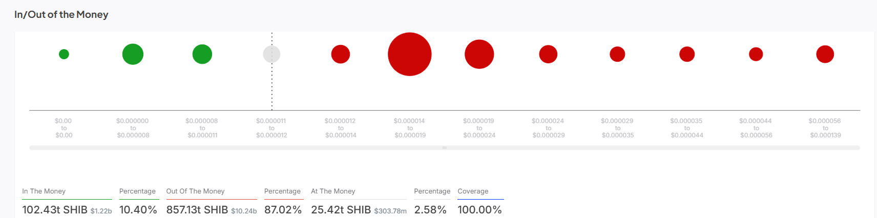 However, the majority of Shiba Inu holders are ‘out of the money’ or currently holding SHIB at a loss. IntoTheBlock’s data suggests that 898,230 Shiba Inu addresses, representing 87.02%, have incurred losses on their SHIB investments. These addresses bought a combined 857.13 trillion SHIB above the current price of $0.00001198.