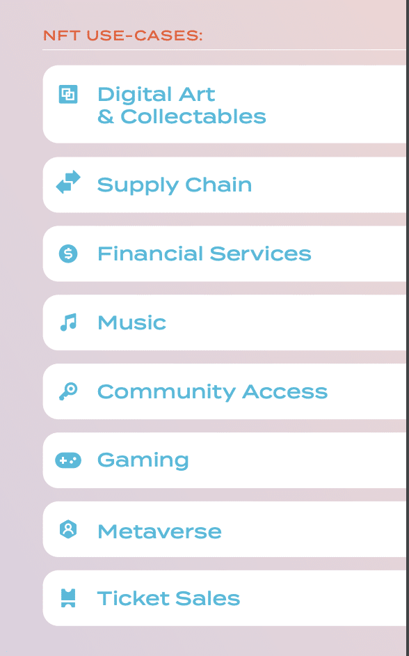 To put this in perspective, The Chamber of Digital Commerce recently published an NFT impact report that explains how NFTs can be used as consumer products within a number of sectors.