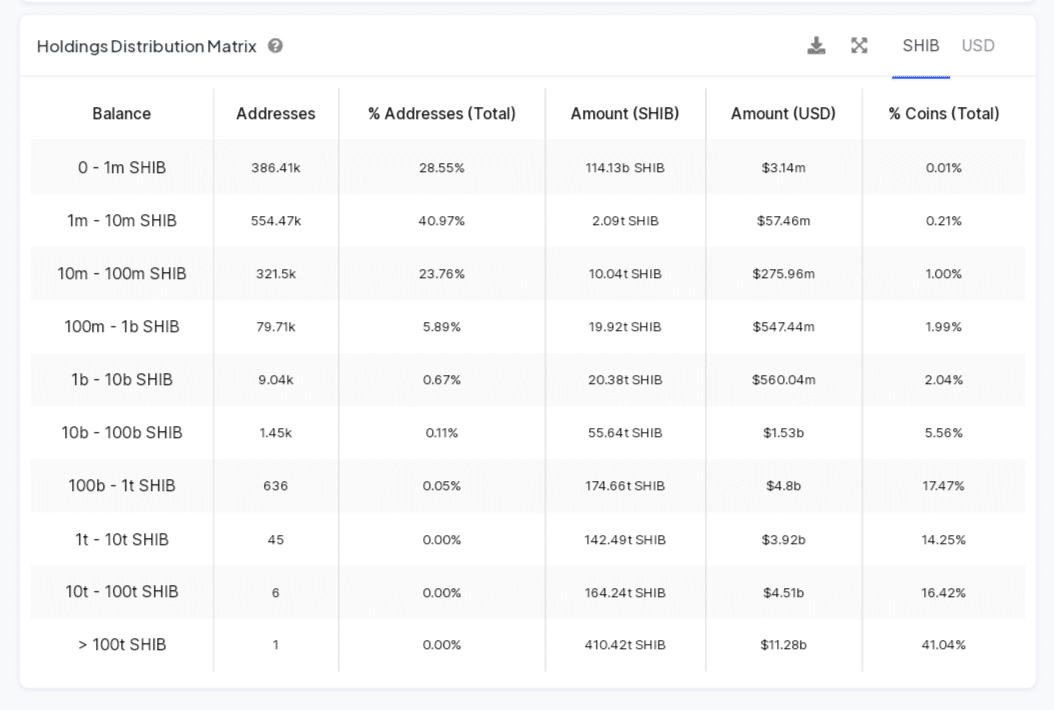 Shiba Inu Holdings Distribution | IntoTheBlock