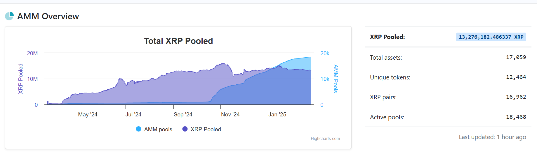 Liquidity within the XRP Ledger AMM pools has crossed the 13 million XRP mark, reflecting a growing traction towards AMMs on the network.
