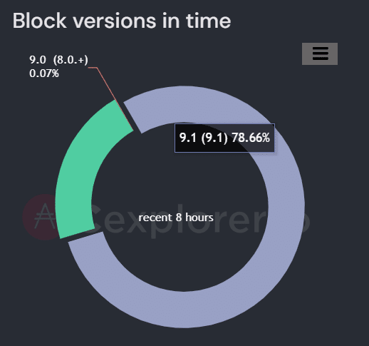 Notably, data sourced by Cexplorer, a leading Cardano block explorer, confirms that over the last eight hours, 78.66% of the blocks produced by the Cardano network have been minted by SPOs running on the latest Chang-ready node 9.1.