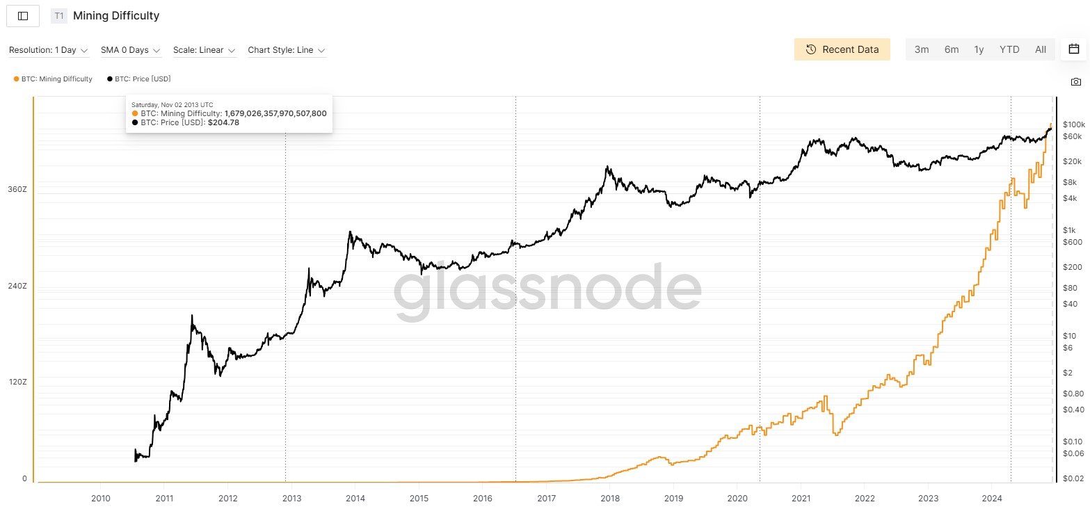 This marks a 110.45 trillion-fold increase in difficulty since Bitcoin’s inception, data from Glassnode showed. This reflects the network’s resilience and the intensifying competition among miners.