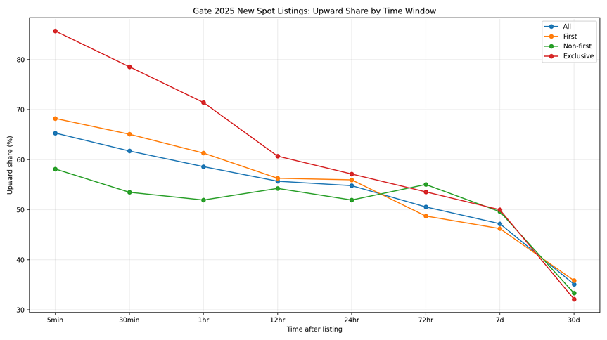A new comprehensive audit by Gate Research, covering 447 spot listings throughout 2025, reveals a clear divergence in performance between fast-follow listings and primary launches. The data suggests that Gate has carved out a significant listing alpha, particularly within its exclusive project pipeline, where short-term price discovery was most intense, delivering a median gain of nearly 81% within the first 30 minutes of trading.