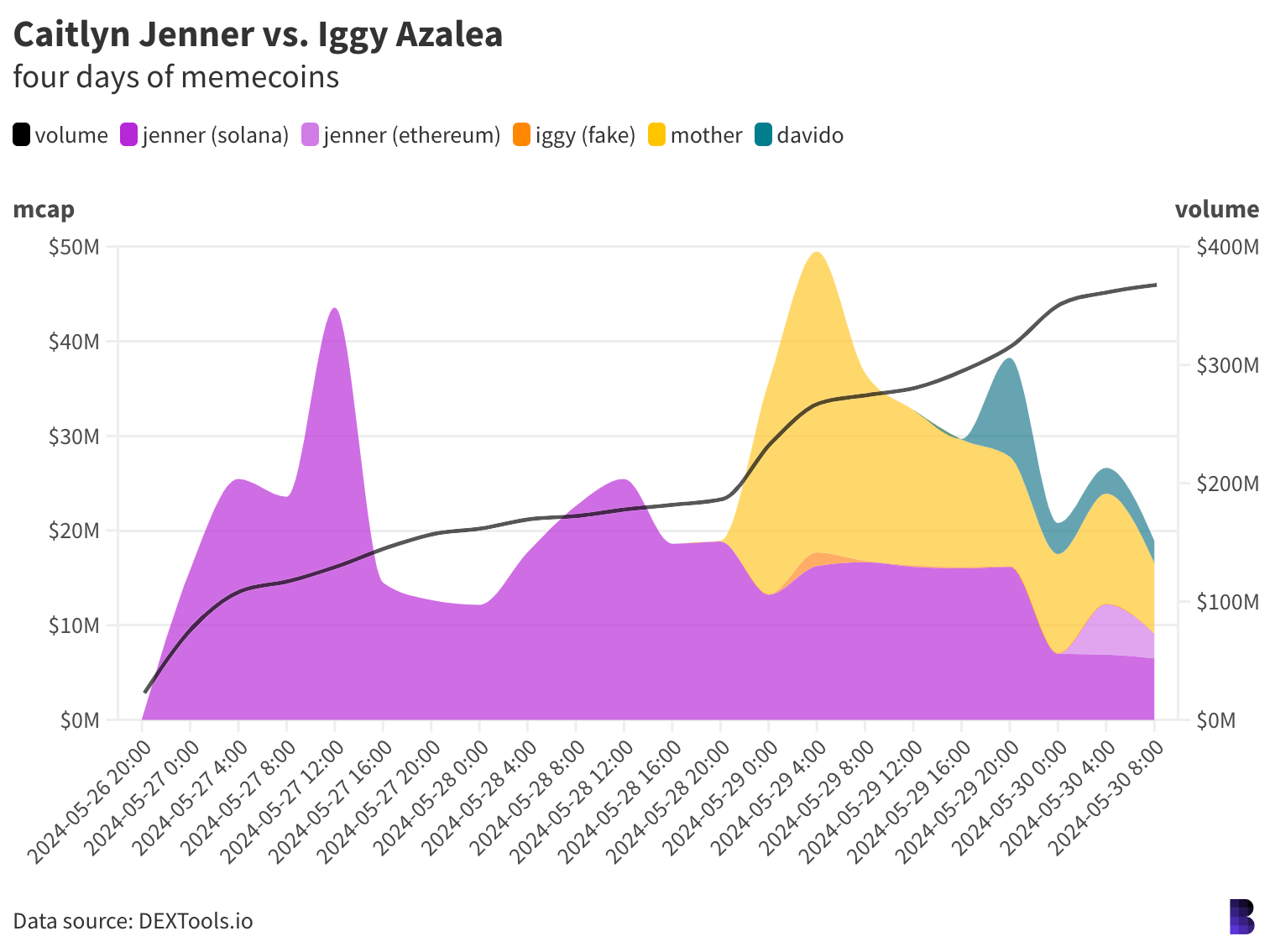 Combined with singer-songwriter Davido’s memecoin, as well as short-lived fake IGGY memecoin from the alleged scammer, the tokens had as of Thursday morning seen about $400 million in trade volume.