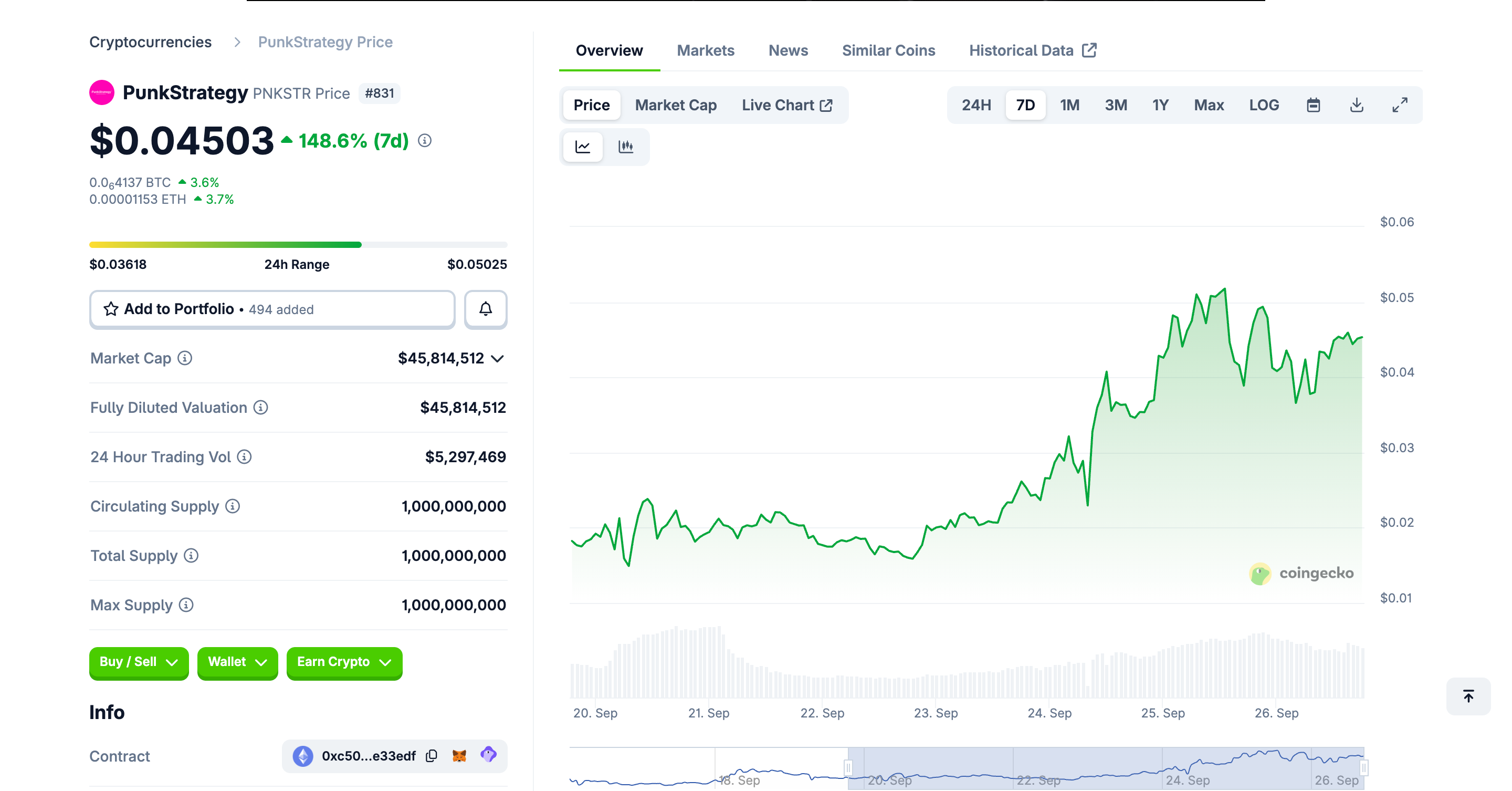 PNKSTR surged by approximately 150% over the past week. Source: Coingecko
