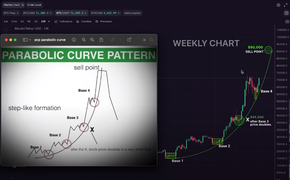 Svenson tells his 78,400 YouTube subscribers that Bitcoin is on a parabolic trend that started in the fourth quarter of 2023 and could rally to a target of around $90,000.